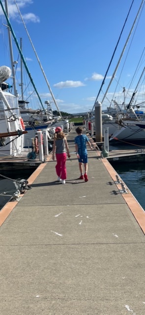 We are all sleeping soundly and adapting to the slower pace of things. John and I are missing our routine workouts and wellness routines, but are finding time here and there to fit in a strength workout or a run. The weather is beautiful: sunny and in the 70’s most days. We are hoping to have all of the major systems up and running by this weekend, so we can venture out for some island hopping, exploring nearby anchorages in bays and coves that come highly recommended by our experienced new friends!