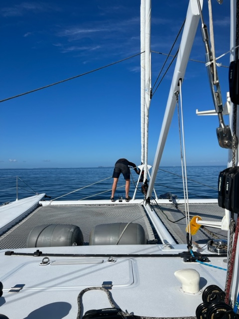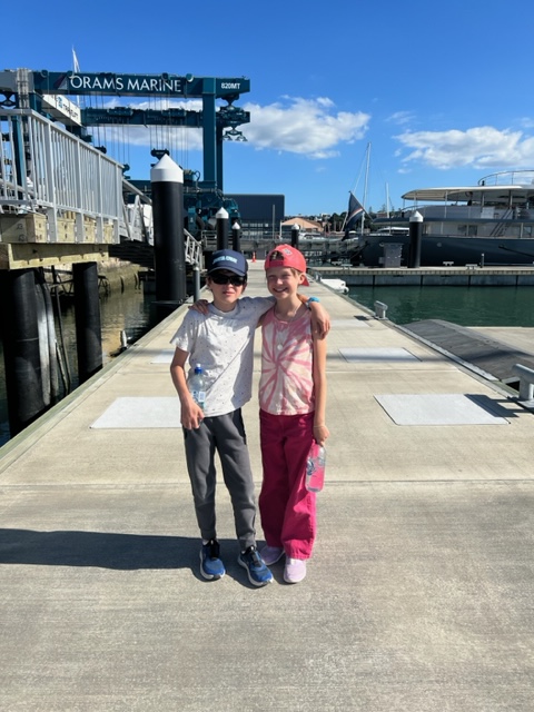 We departed before sunrise on Wednesday to sail the 7.5 hours from Great Barrier to Auckland. Dalton was on the anchor in her bathrobe, and then soon back in bed with a book. We enjoyed a beautiful day with calm waters. While underway, John gave the boat a thorough scrubbing and reorganized lockers and lines. I changed sheets, vacuumed, refreshed ant bait, cleaned countertops and heads. These things rapidly become activities instead of chores! Dalton and Hall read, wrote, played games, navigated and fished. I started spaghetti for dinner, and after making the sauce, we ran out of propane. Luckily, there’s a single electric burner on board that we could use for the noodles and remaining meals.