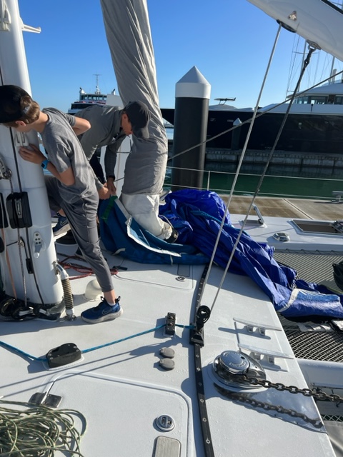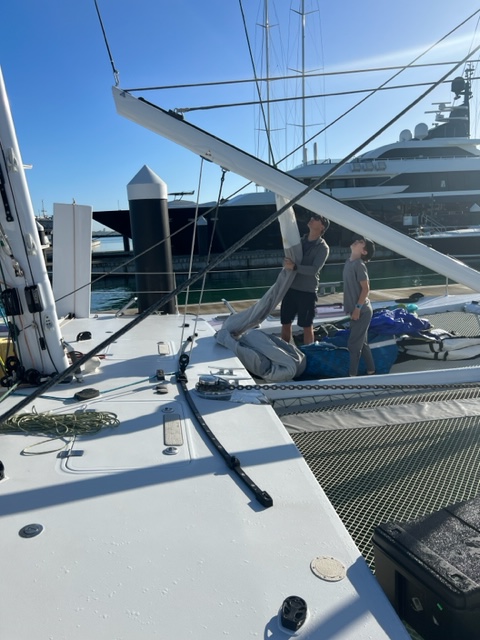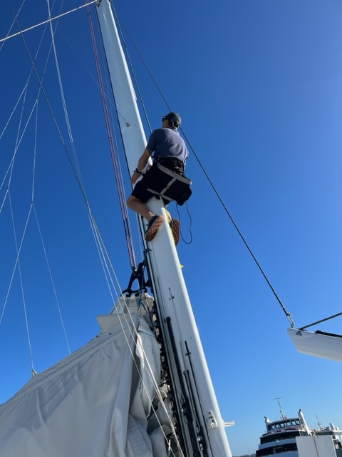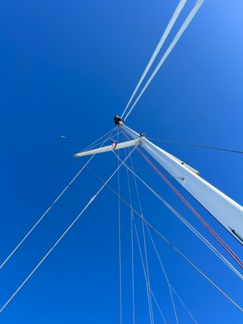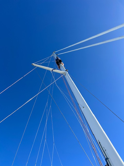 The Maritime Museum was a hit- worth visiting twice. We’ve done some shopping and dinghy touring. John and Hall have wing foil lessons scheduled for tomorrow. Yesterday, I ran John up the mast to take down the NKE mast head unit that provides wind speed and direction. We took out the spinnakers to assess, repack, and prepare for use.